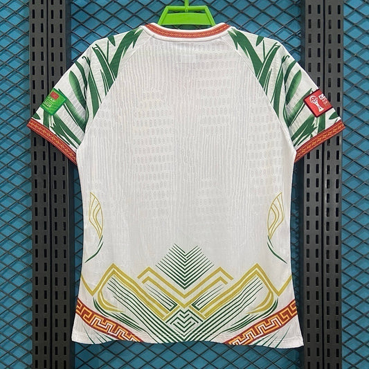 Les maillots sont soigneusement sélectionnés pour refléter l'identité distinctive du Mali, avec les couleurs vert, jaune et rouge caractéristiques et des détails authentiques qui célèbrent les succès et l'héritage du pays. Chaque pièce est un symbole de tradition, de résilience et de passion qui définissent le Mali dans le monde du football.