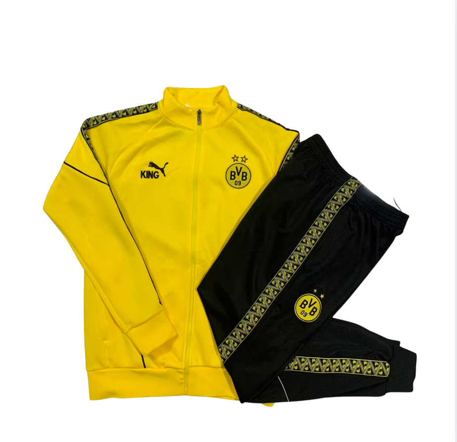 Este chándal presenta una base blanca impecable, acentuada con toques dorados que simbolizan el éxito y detalles negros que le dan un aspecto moderno. Fabricado en poliéster transpirable y elástico, ofrece una libertad de movimiento óptima y una comodidad ideal para entrenar o para el día a día.