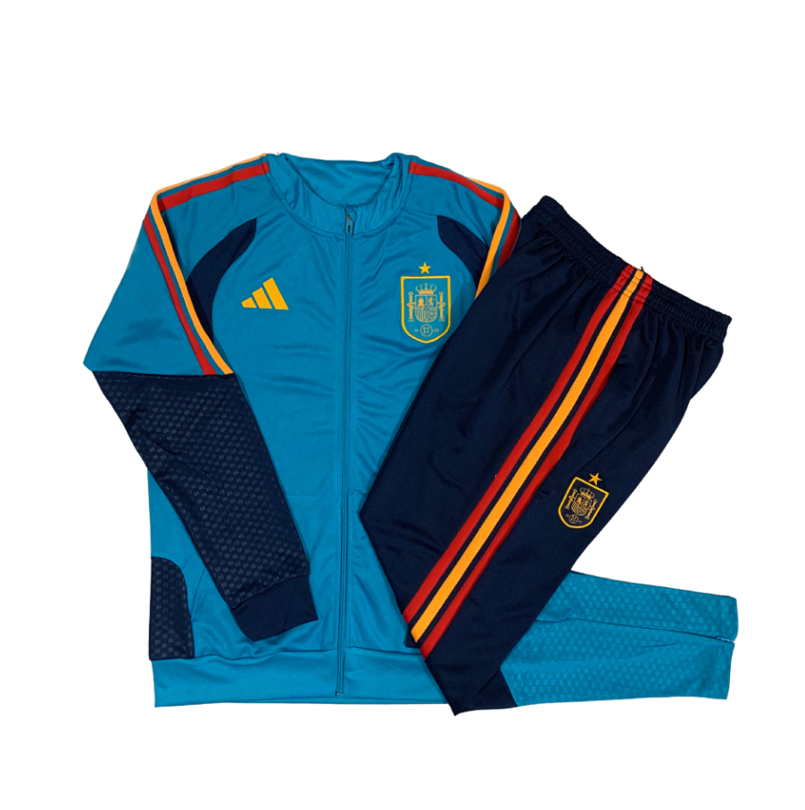 Le logo officiel de la Fédération Espagne de Football est brodé sur la veste et le pantalon, ajoutant une touche premium et authentique. Avec son col montant, ses poches zippées et ses chevilles ajustées, il assure à la fois un style moderne et une grande praticité.